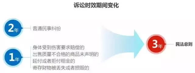 一、《民法总则》生效后,诉讼时效规定的变化点: